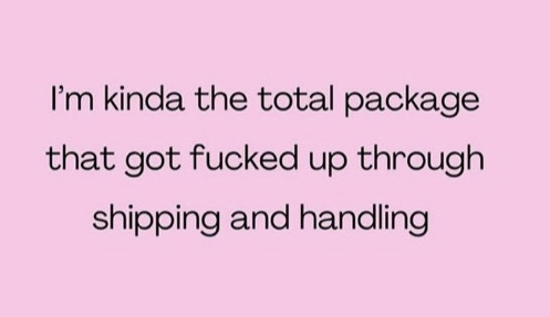 My core is the total package, but I most certainly was damaged in shipping and handling on the journey to get here today. I like the idea of looking at all the dimensions that make me up and I feel more comfortable acknowledging the good and bad within myself. I also really like the thought of others seeing me that way. I want people to see the total package part which consists of all my best qualities such as loyal, compassionate, hardworking, funny, creative and smart but also understand the “fucked up” part that can cause unattractive behaviors on occasion.